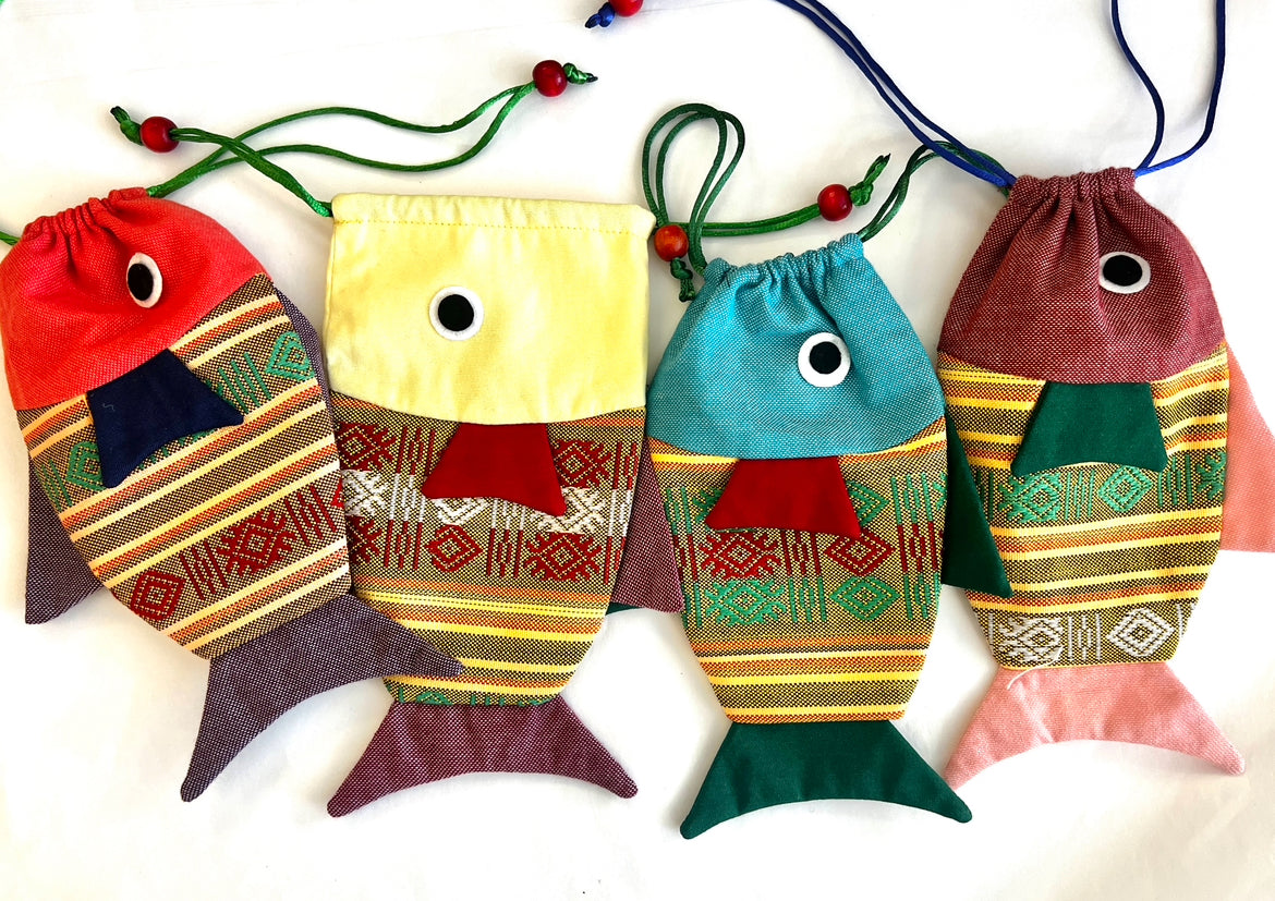 "Animal House" Drawstring Fish Pouch from the White Thai