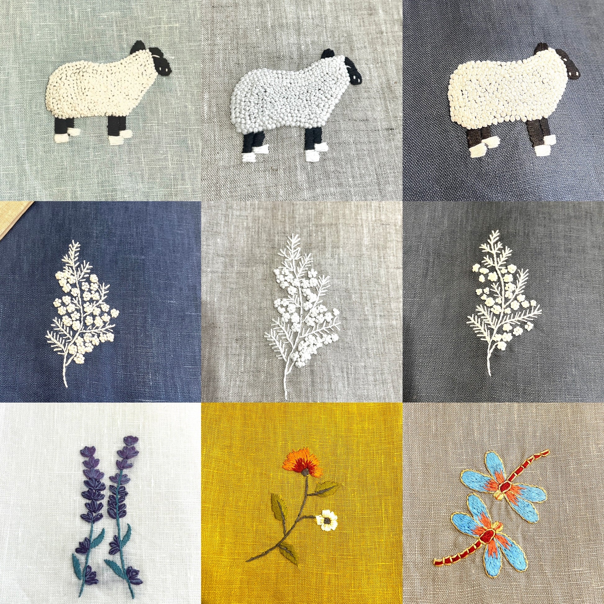 "Botanicals" Hand Towel, hand embroidered linen
