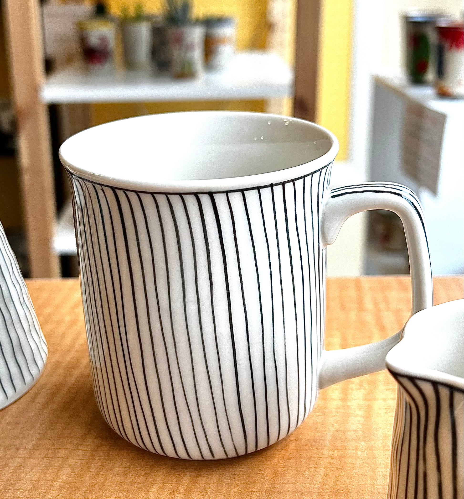 Hand-painted Coffee & Tea Mugs with dots and lines, from Bat Trang, Vietnam