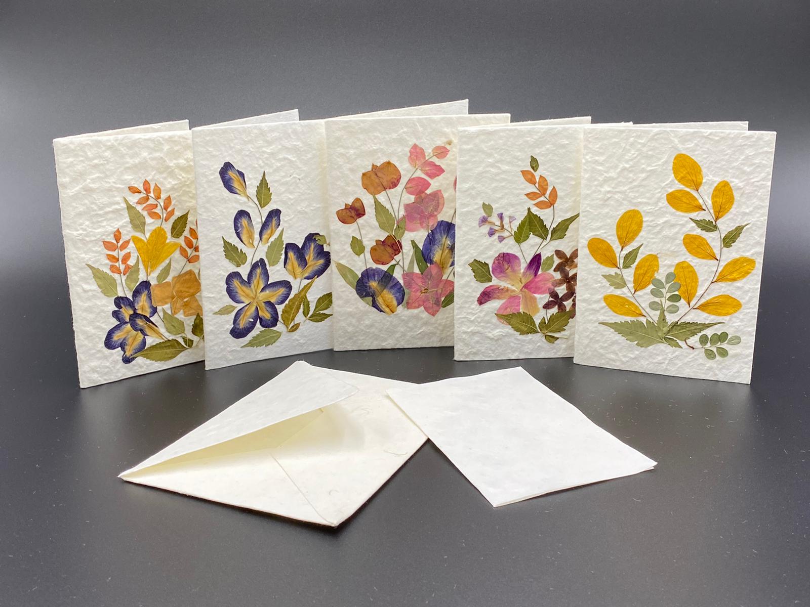 Made by hand in Laos using the same family of trees used to feed silk worms, these cards are unique with real dried flowers!